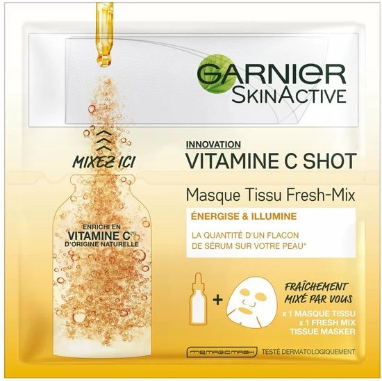 Ontdek de eerste Fresh Mix Tissue Maskers van Garnier! Verwen je huid met een hydraterende boost Vitamine C. Vitamine C revitaliseert en laat de huid stralen.