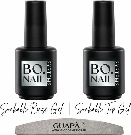 De perfecte Base Coat en Top Coat voor het maken van een prachtige basis voor iedere nagel en het afwerken van je nagels. Met deze Soak off base en top gels heb je 2 professionele en essentiele nagelproducten die je kan gebruiken in combinatie met ieder merk nagelproducten. De Top Gel kan je zelfs nog gebruiken bij je acryl nagels!