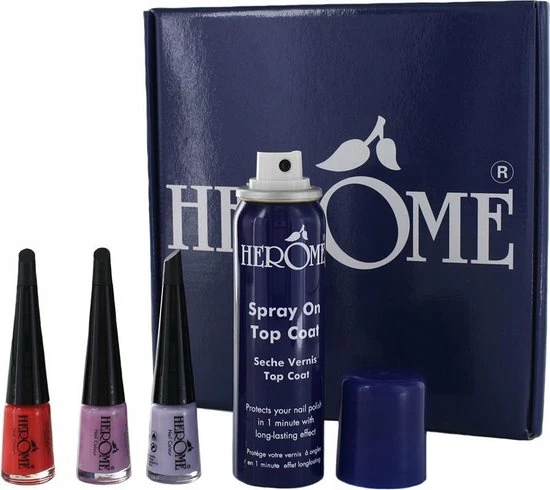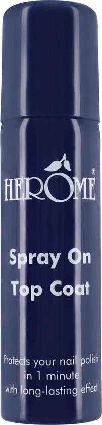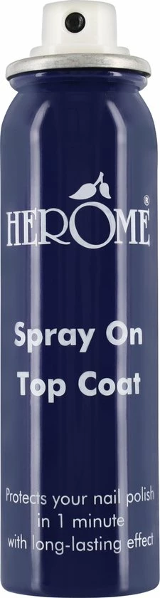 Daarna breng je een base coat aan voordat je aan de slag gaat met je kleurlak. Laat je nagels even drogen. Vervolgens breng je een top coat aan om je nagellak te beschermen.Herome Spray on Top Coat