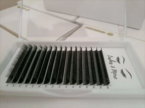 Deze wimperextensions hebben een prachtige diepzwarte kleur. In het doosje vind je 16 rijen wimperextensions. Dit is erg handig als je werkt met een glasplaat oftewel een Lash Palette.