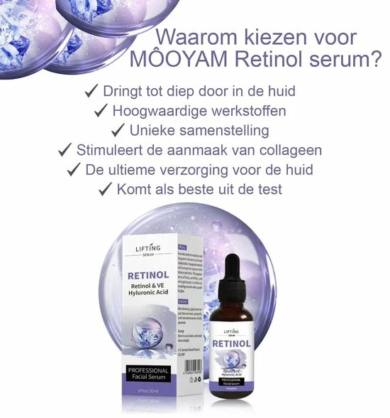 Heeft u last van ouderdom verschijnselen en komen de eerste fijne lijntjes al tevoorschijn? Of wilt u uw rimpels of pigmentvlekken verminderen? Dan is het M?OYAM retinol serum iets waar u naar opzoek bent. Door het gebruik van het serum kunt u nog lang genieten van een stralende en jong uitziende huid.