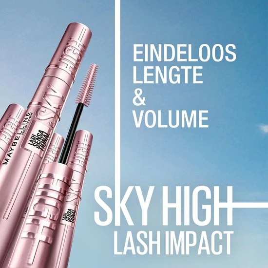 Ga voor eindeloos lengte en volume met de Maybelline Lash Sensational Sky High Very Black mascara voor wimpers met een sky high impact.