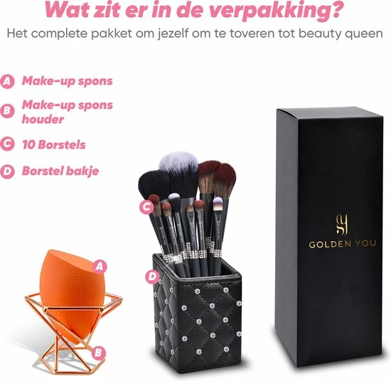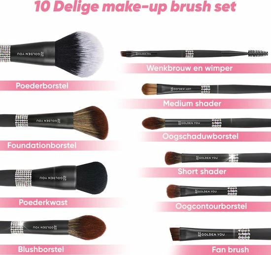 Of je nu beginnend of expert bent in het aanbrengen van make up, de Golden You Kwasten Set helpt jou verder in het aanbrengen van de perfecte look!