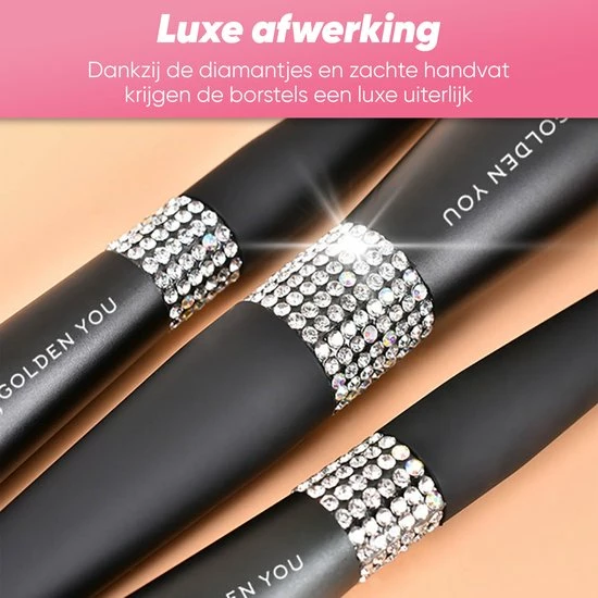 De Golden You borstels zijn gemaakt van prachtige materialen waardoor het een uiterst luxe en degelijke uitstraling biedt. De diamantjes maken het hierbij ook helemaal af. Het is dus een echte blikvanger op jouw badkamer of make-up tafel!