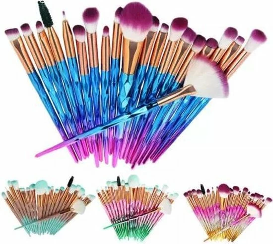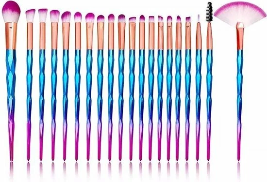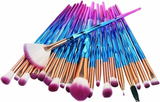 Merkloos Set Van 20 Make-up Kwasten – Eenhoorn Stijl – Paars / Blauw – Sparkolia – Professionele Make Up Brushes- Kwastenset – Hoge Kwaliteit Borstels