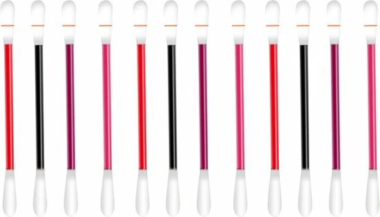 Breek het wattenstaafje langs het uiteinde gemarkeerd met de rode lijn, laat het wattenstaafje rechtop staan zodat de vloeistof naar het andere uiteinde kan stromen. Breng vervolgens aan op je lippen.